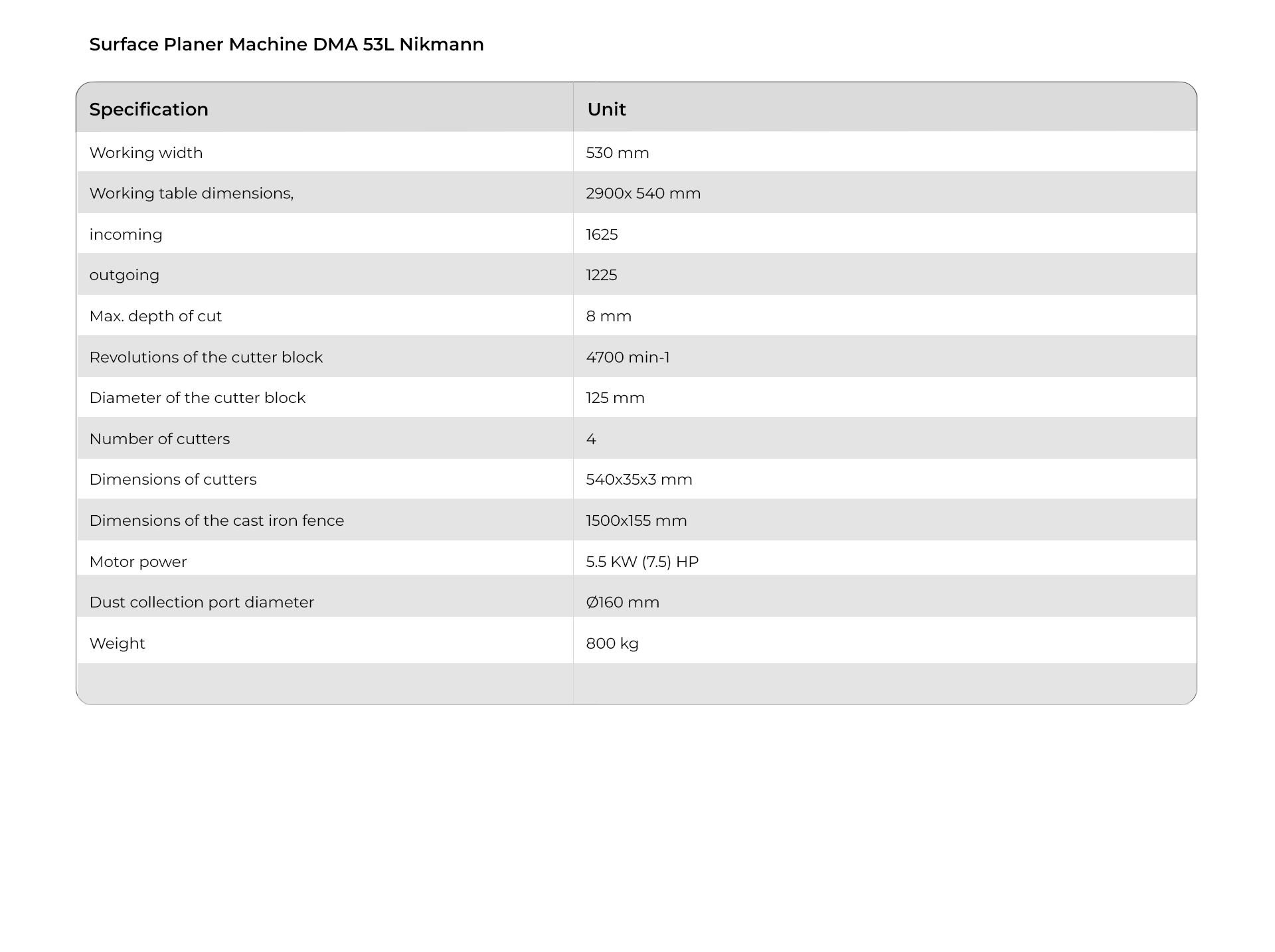 Surface Planer Machine DMA 53L Nikmann